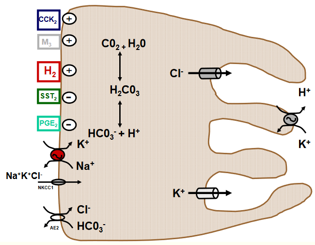 | HCl | maag | parietaalcel | Ach, histamine | |||