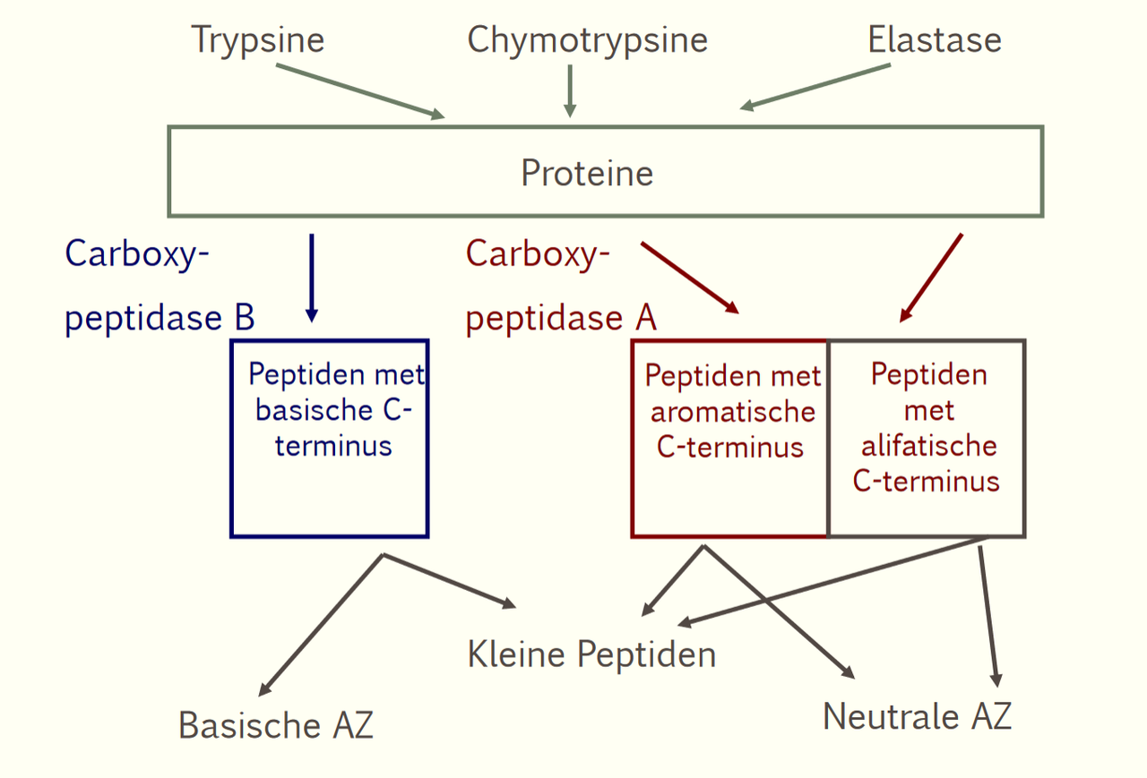 - alpha-amylase (pH optimum: 6.9 → werkt niet in maag)
