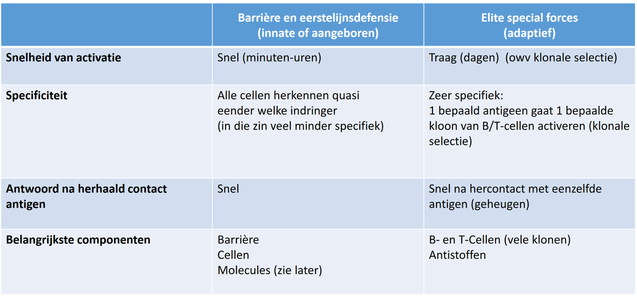 - aangeboren = innate immune system (eerstelijnsdefensie)