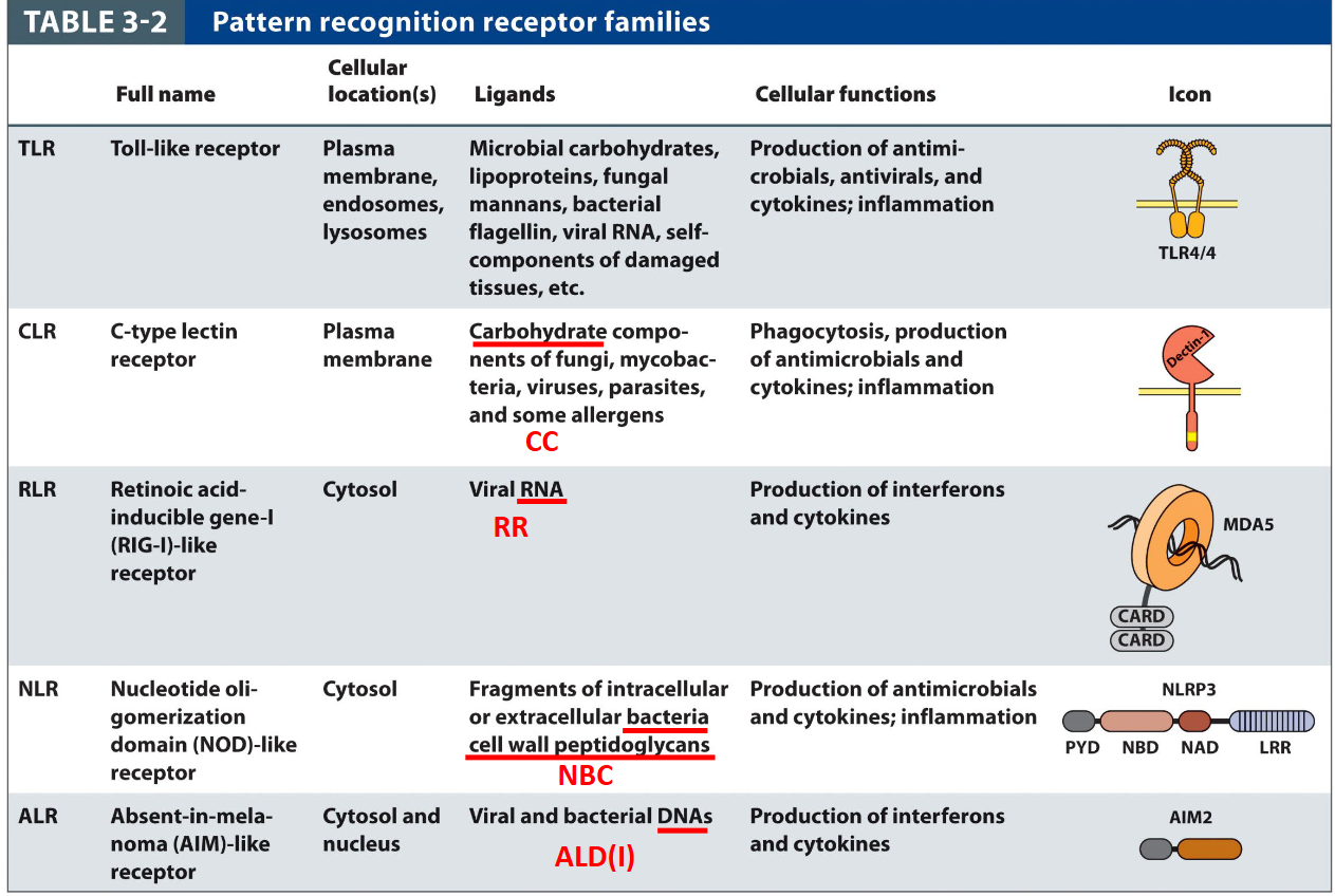 - PRR = pattern recognition receptors