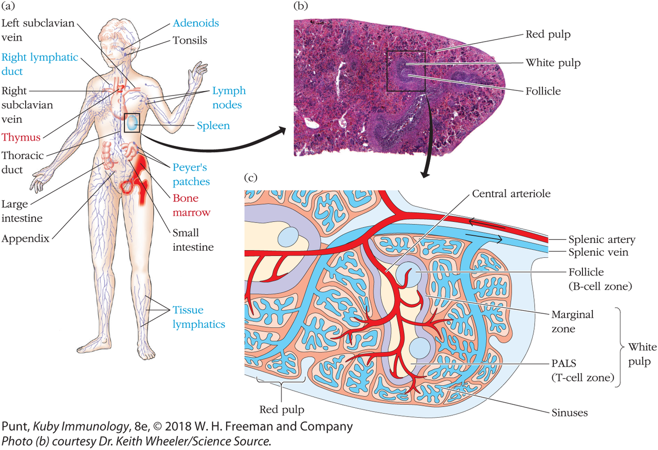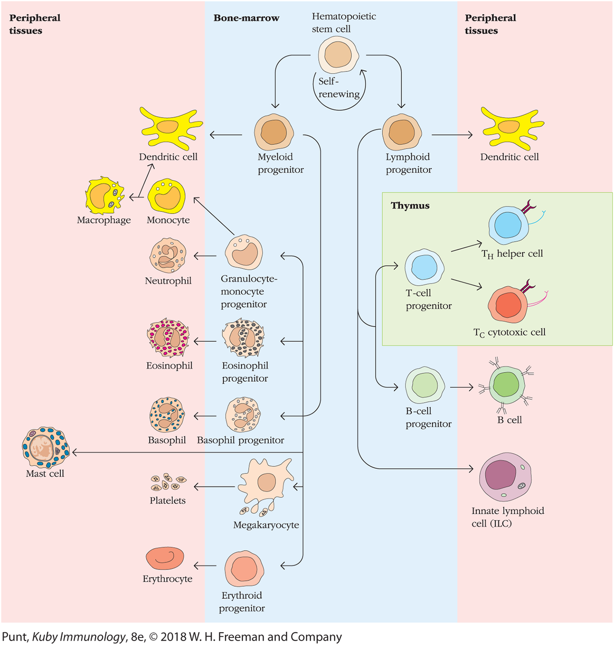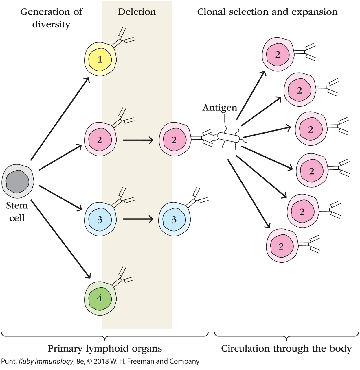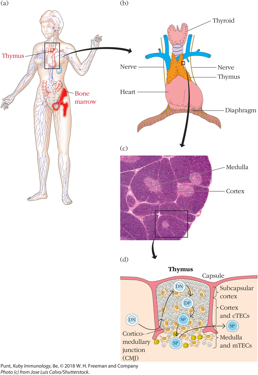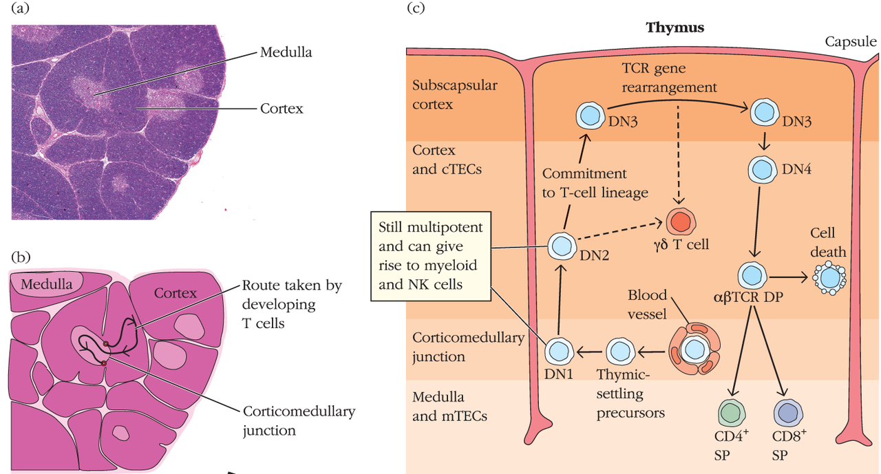 - beenmerg -> thymus -> secundair lymfoid weefsel