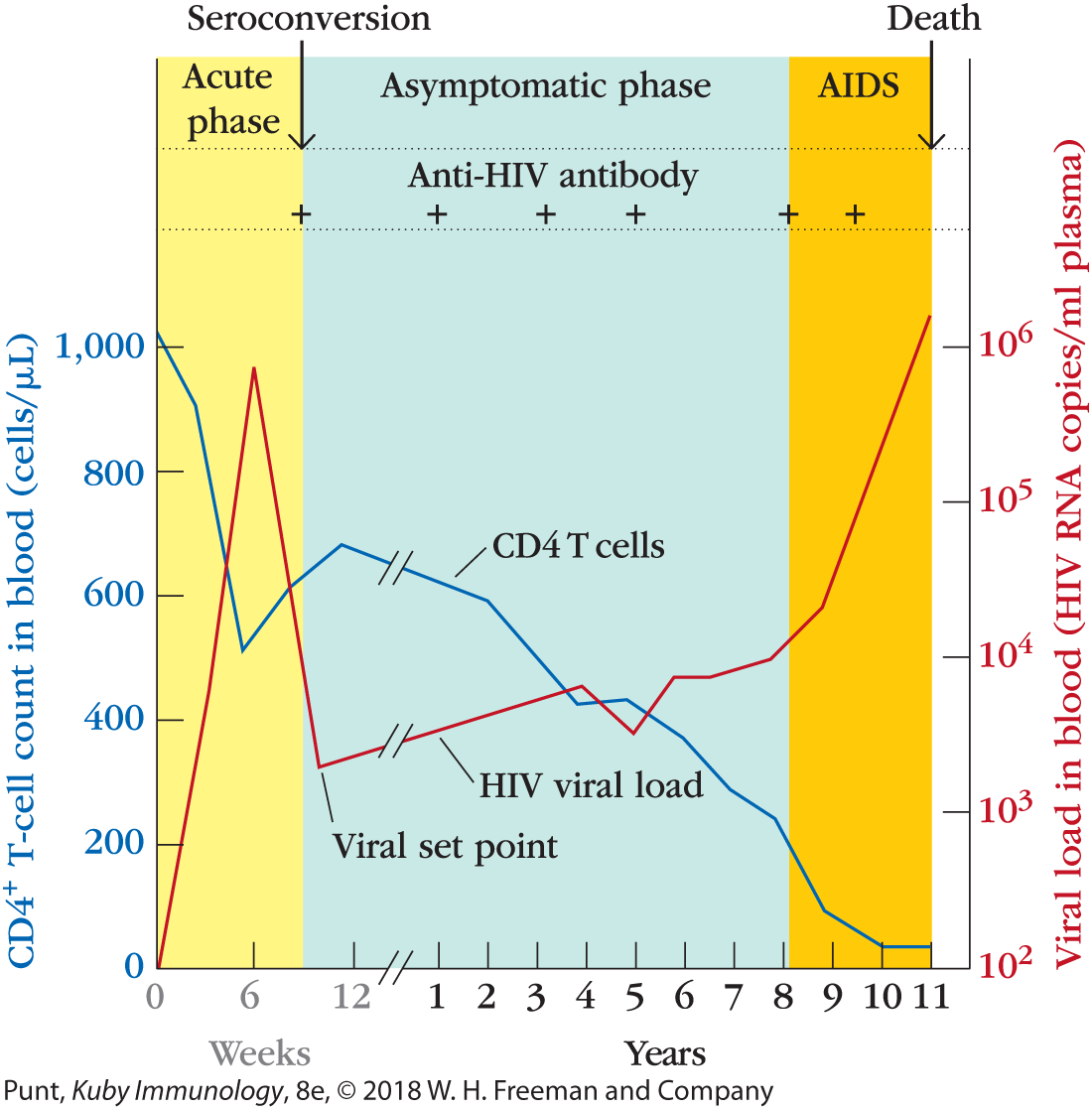- fasen (i.f.v. T cel count)
