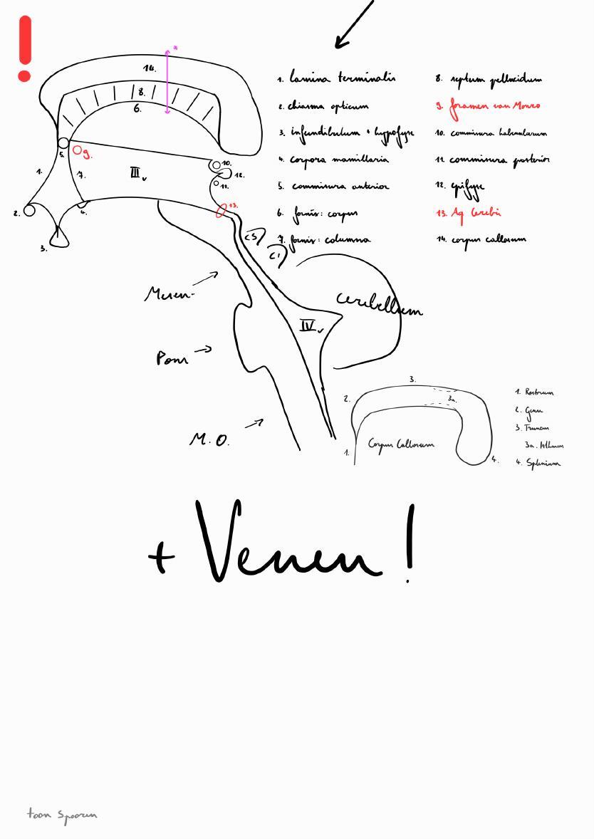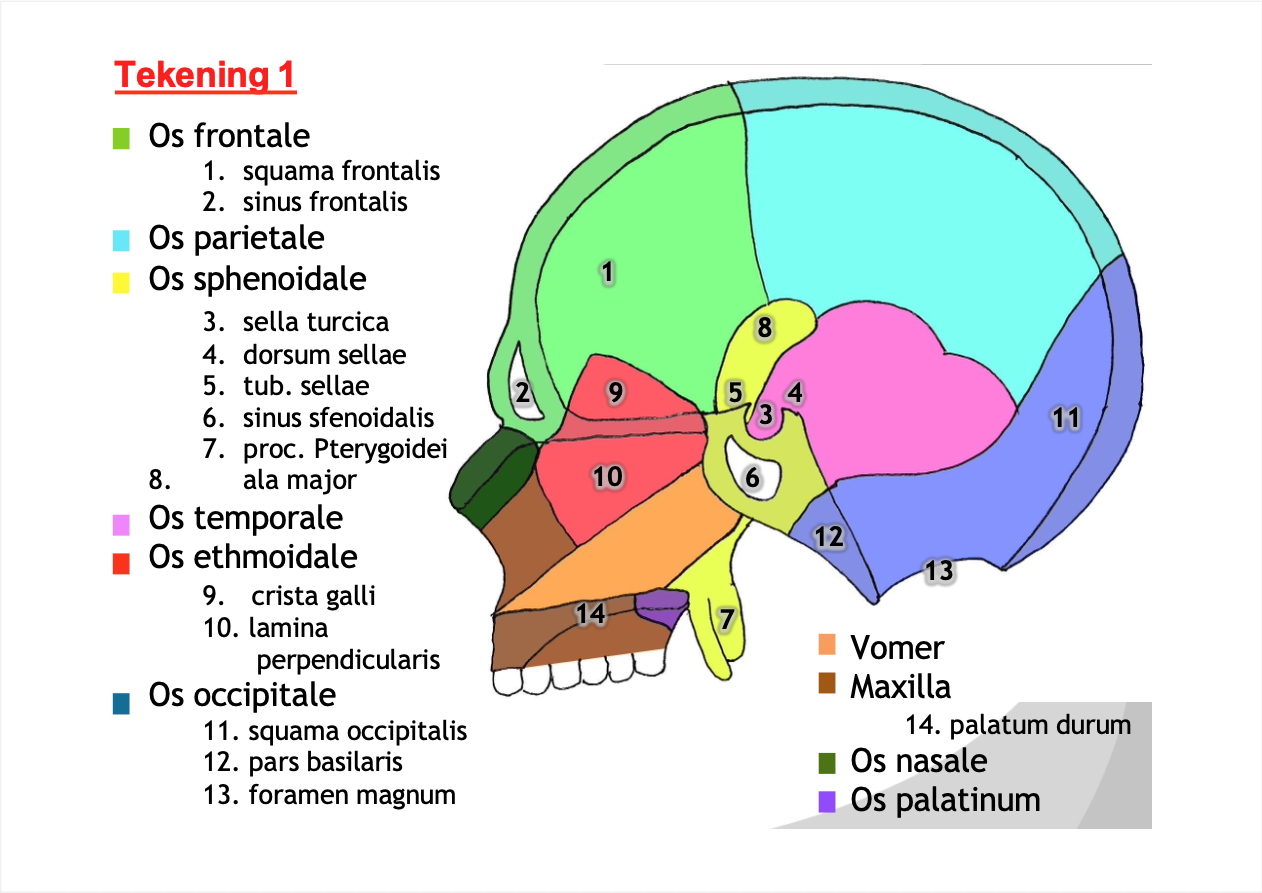 - 1.1 teken een sagittale doorsnede van de schedel op de middellijn