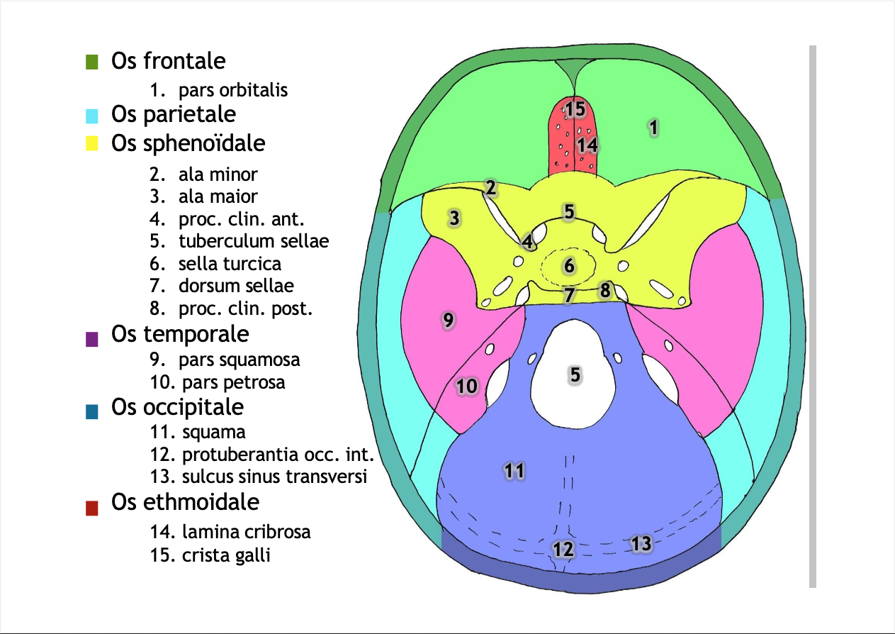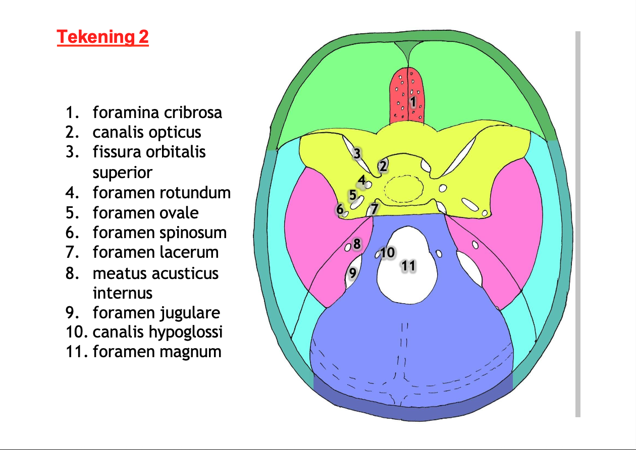 - 1.1 teken de schedelbasis (binnen/boven aanzicht)