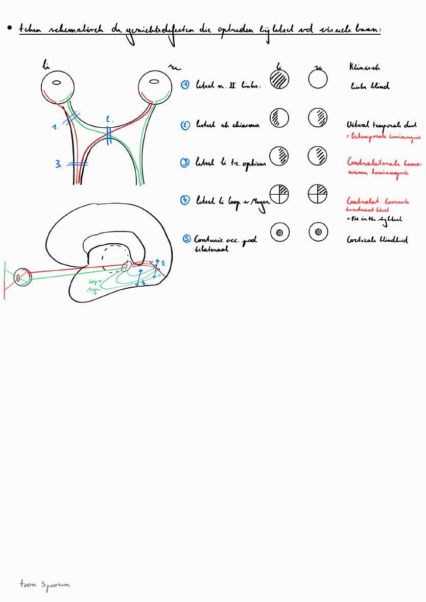 - 2.8 teken schematisch de gezichtsvelddefecten bij letsel visuele baan