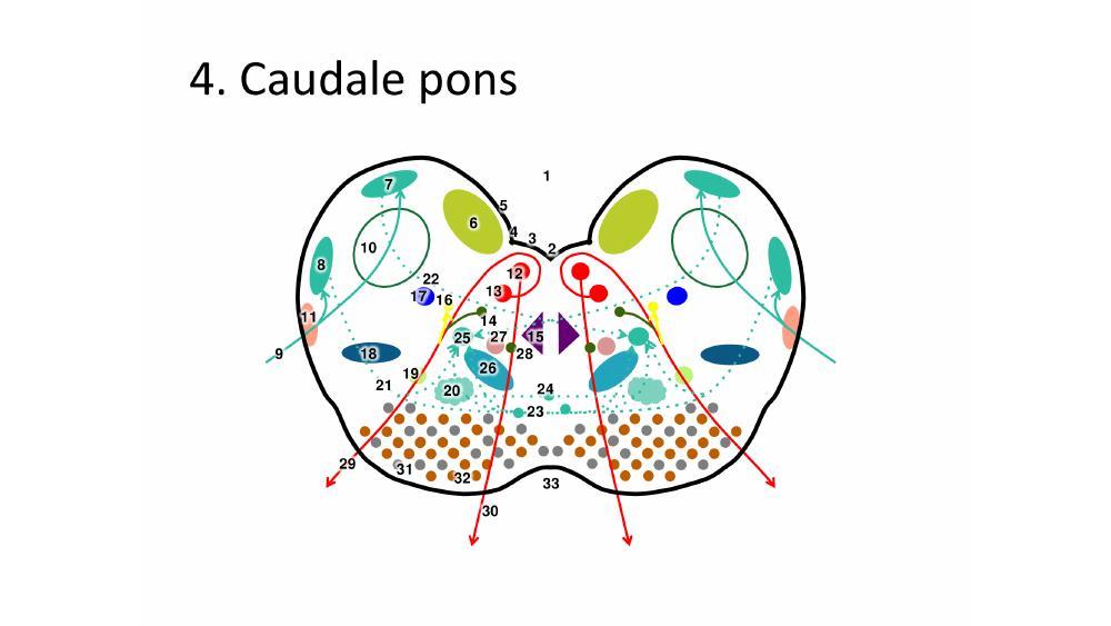 - 2.1 oorsprong en verloop van descenderende motorische banen uit hersenstam