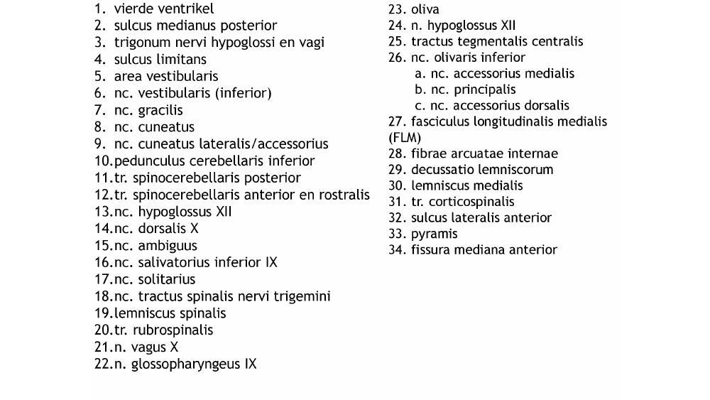 - 1.4 doorsnede door craniale deel medulla oblongata