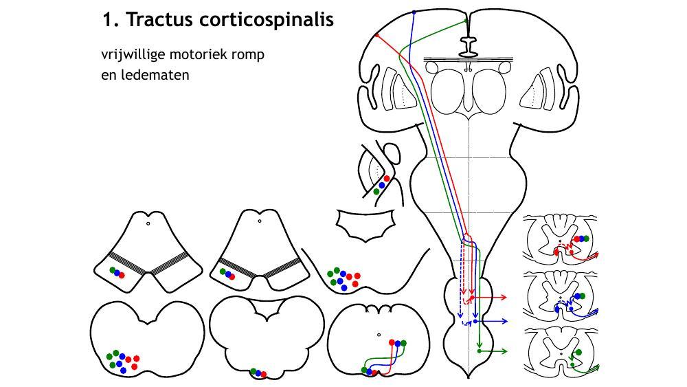 - 2.1 oorsprong en verloop van tractus corticospinalis