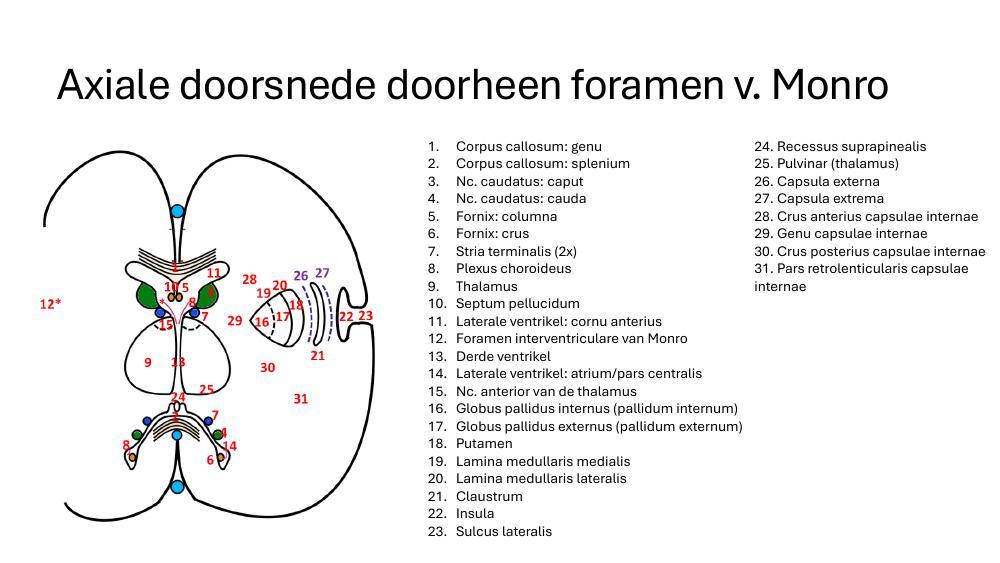 - 1.3 horizontale doorsnede cerebrum door foramen interventriculare (Monro)