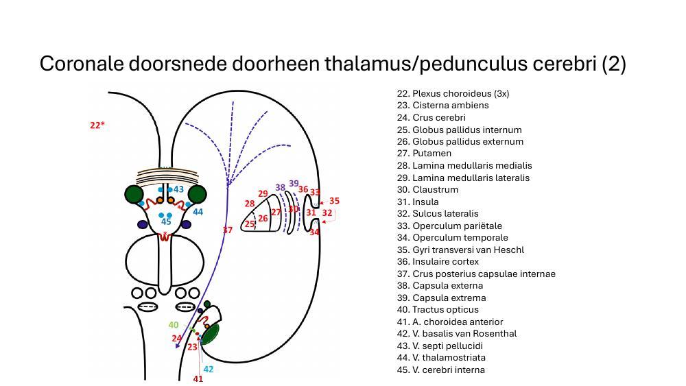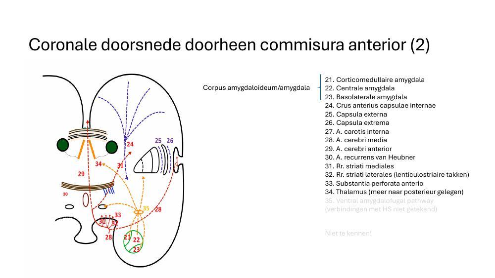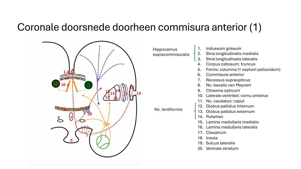 - 1.3 coronaire doorsnede cerebrum door commissura anterior