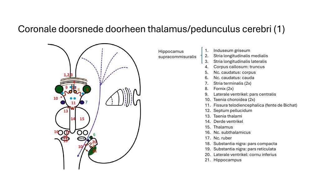 - 1.3 coronaire doorsnede cerebrum door telencephalon, diencephalon en mesencephalon