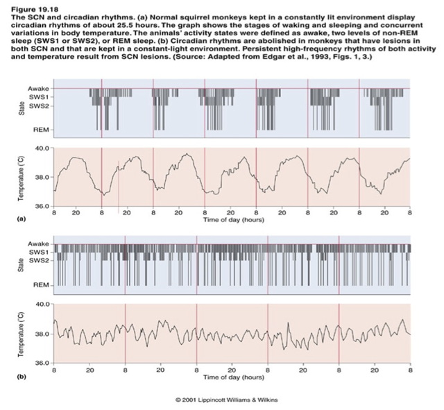 - a) bilateraal letsel nucleus suprachiasmaticus (SCN)